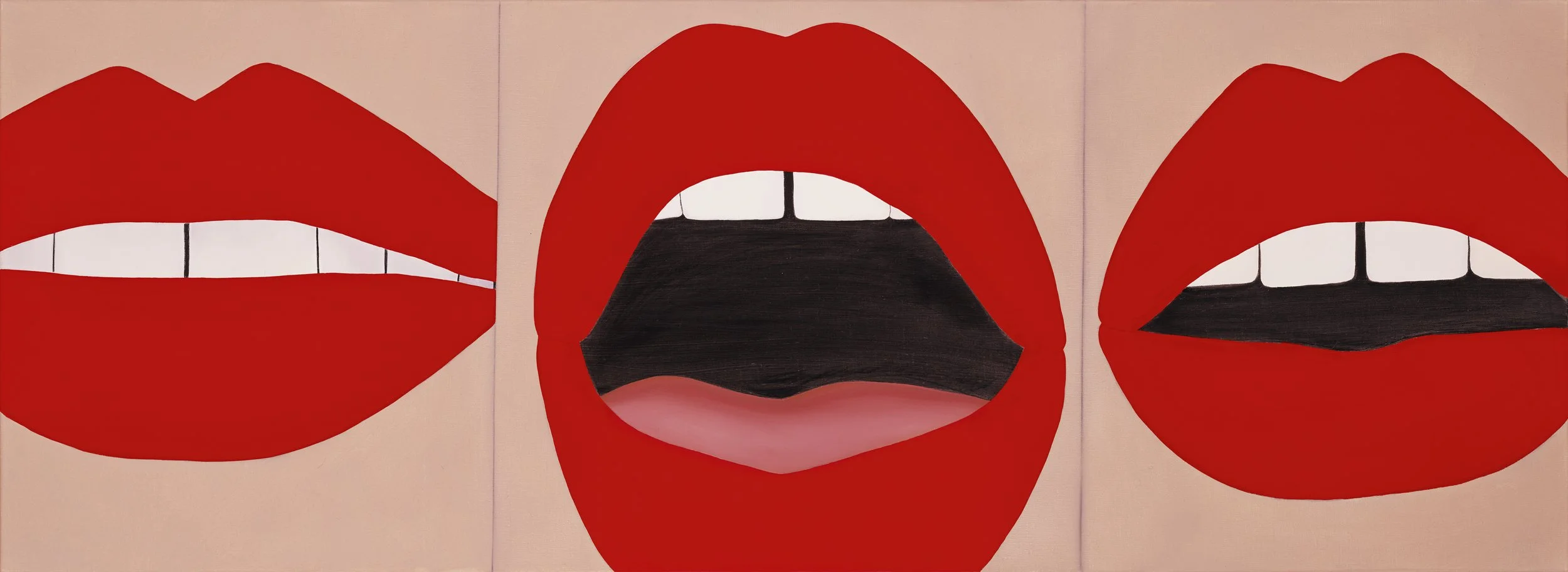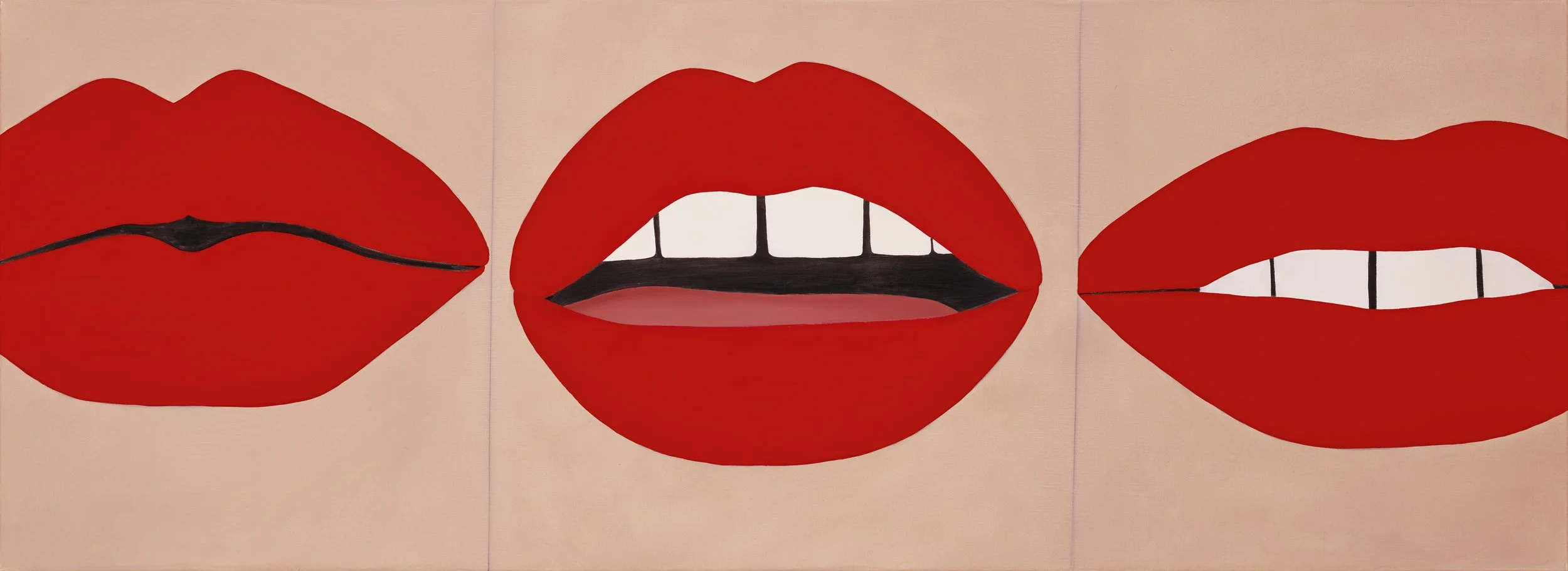 Chit Chat (Triptych), 2025 Pencil and oil on canvas